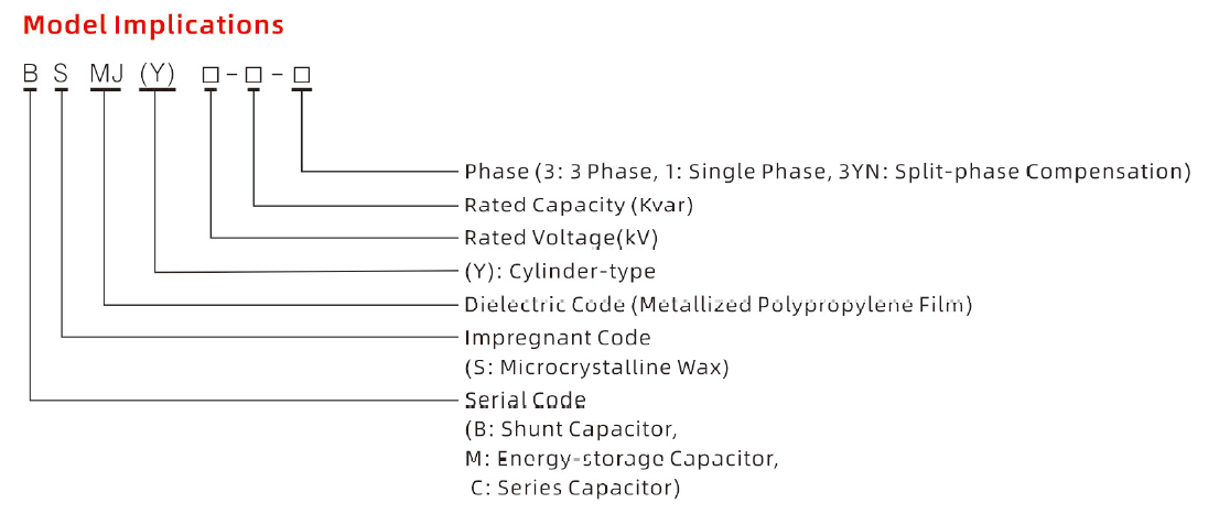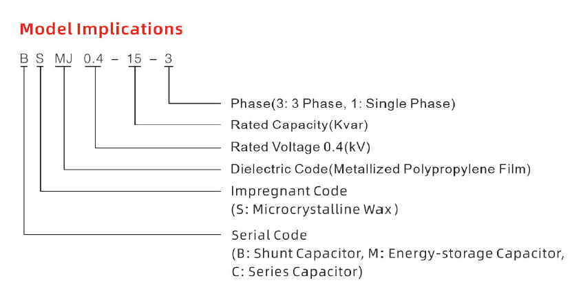 Bien que les normes nationales chinoises de l'industrie mécanique ne précisent pas explicitement la désignation exacte de la série pour les condensateurs shunt auto-réparateurs basse tension, elles réglementent strictement la manière dont les fabricants doivent nommer une série de condensateurs de puissance en utilisant des lettres. BSMJ est simplement une désignation courante de série de condensateurs de puissance qui est conforme aux règles de dénomination standard de l'industrie.
